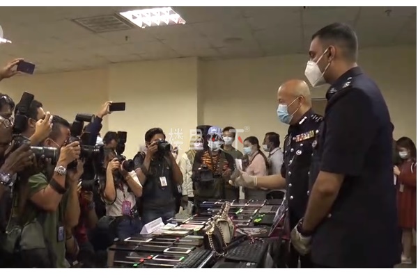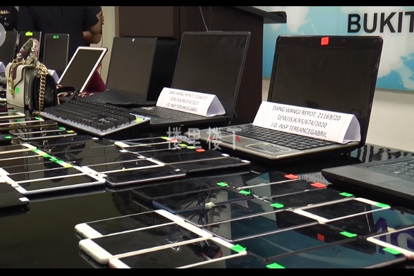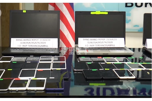 On the raid itself, he said that seven laptops, 125 mobile phones, 1 iPad, four bags, two wrist watches, two rings, RM27,222 cash as well as foreign currencies in different denominations were among the items seized in the raid.125臺手機,7臺筆記本電腦等以及先進27222馬幣被扣;